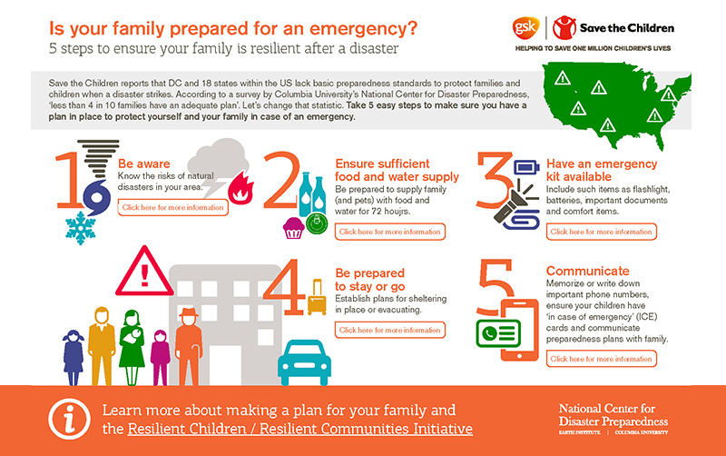 Is your family prepared for an emergency? Based on NCDP’s 5 Steps to Preparedness model and coupled with resources from Save the Children, this simple infographic will help remind you of the simple steps...